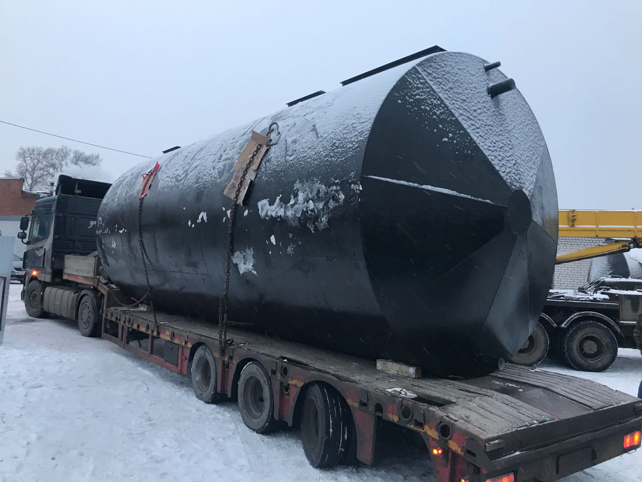 Габариты очистного сооружения: 3 емкости длиной 9800 / диаметром 2400 / весом 17700 кг.